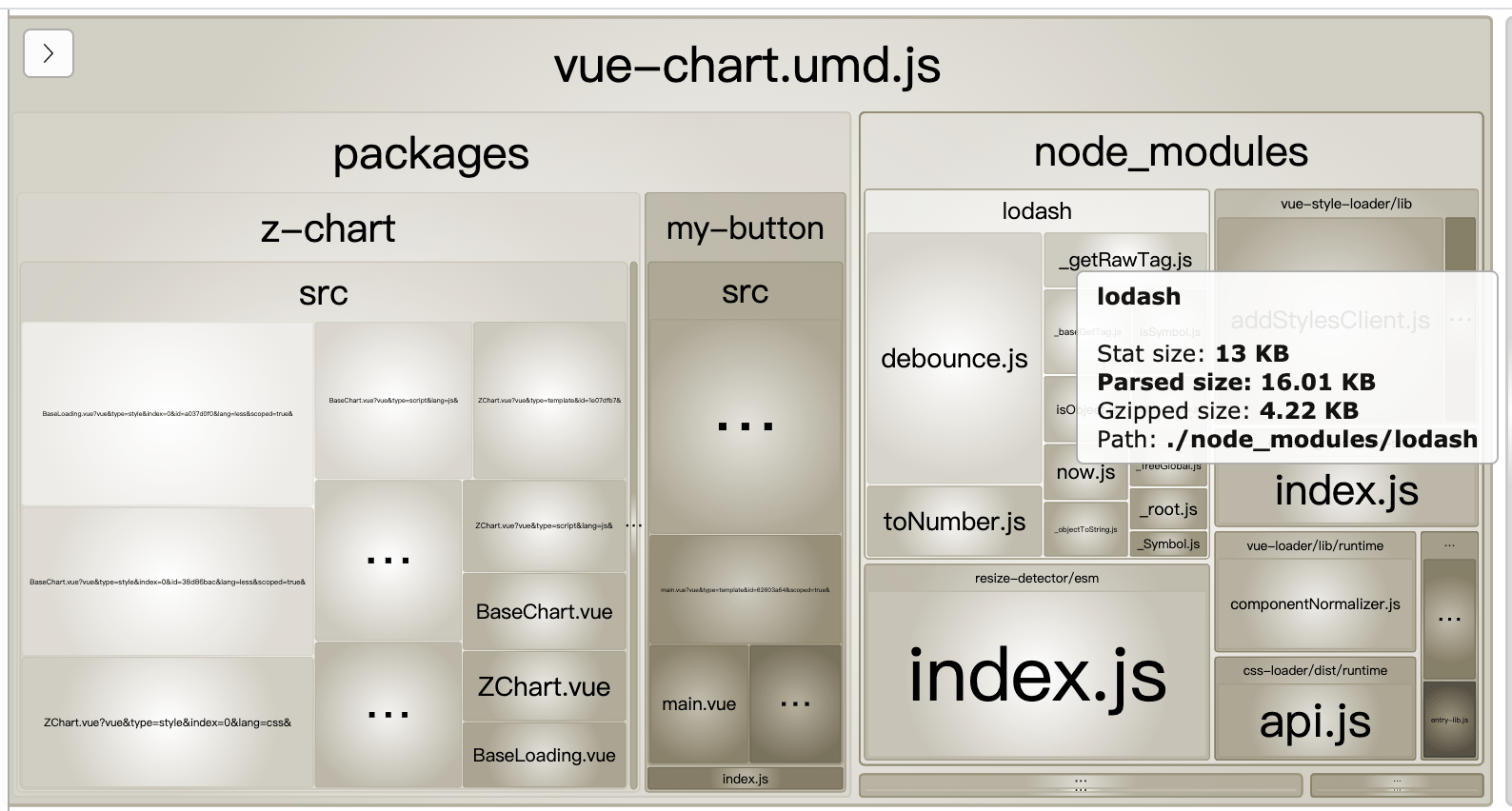 以下是 打开 lib/项目名.umd-report.html 后,显示的各模块大小示意图